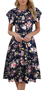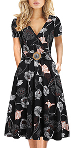 Features: Fit and flare dresses for women, floral tunic dress with pockets. Flower print dress for spring-summer. Simple elegant design, many solid basic colors. A necessity for every wardrobe. Can be worn on many occasions depending on what you accessorize.